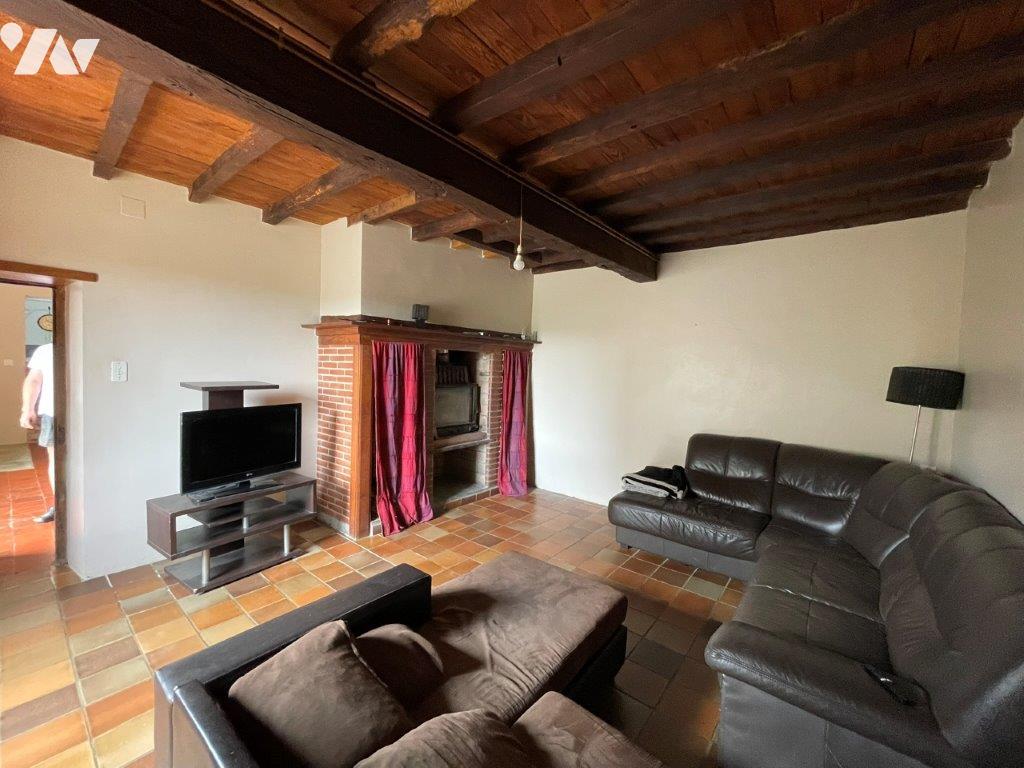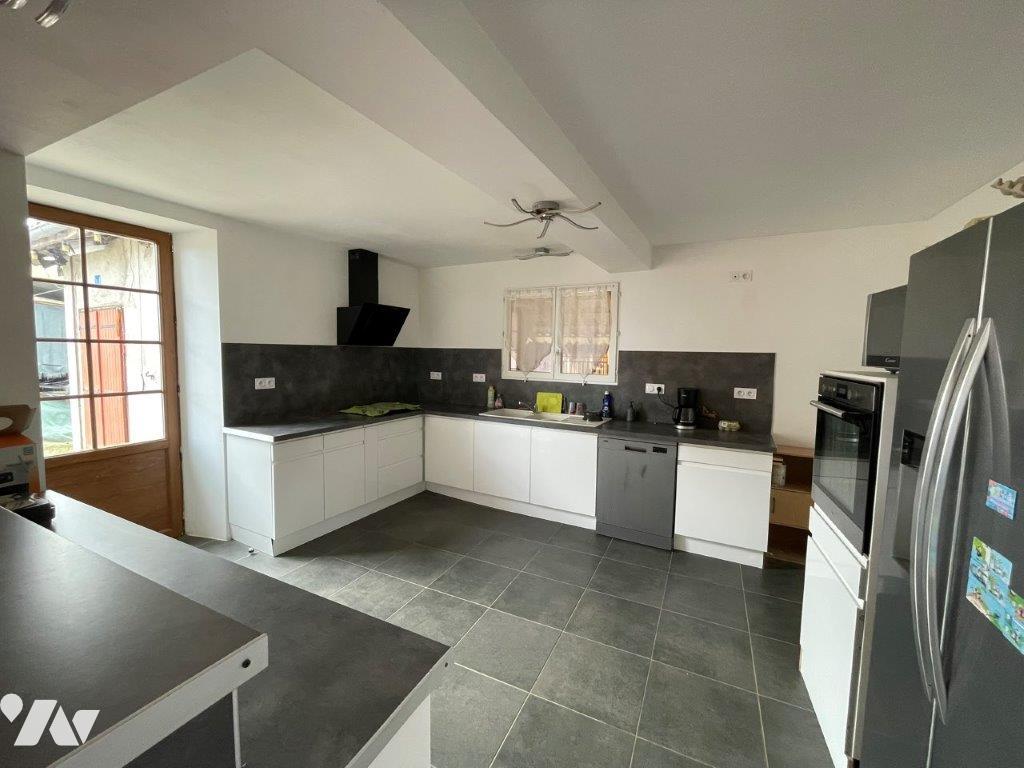 Hall d'entrée, belle pièce de vie cuisine/séjour de 44m², cellier, salon avec cheminée/insert, une chambre, salle d'eau, chaufferie.