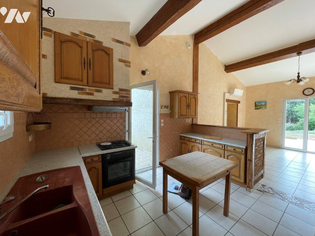 Entrée sur salon/séjour, cuisine/salle à manger, cellier, un espace nuit avec salle d'eau.